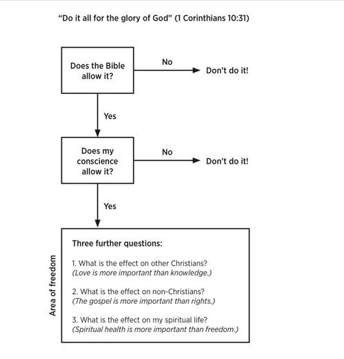 Think through these steps and see how this can be applied to questions of liberty in your life! (Credit to Pastor Matt Smethhurst for sharing this on Twitter).